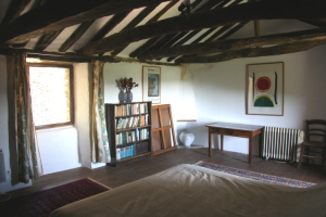 The main upstairs bedroom used to be a hayloft and, long before that, a room where silk was made. The small fireplaces which you can see in the corners were used to keep the room warm in winter. (They are no longer used - heating if needed is electric.)